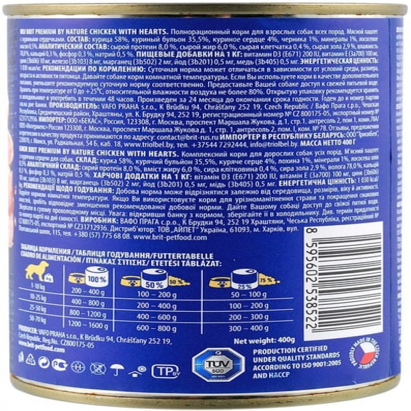 Вологий корм для собак Brit Premium Курка з курячим серцем 400 г