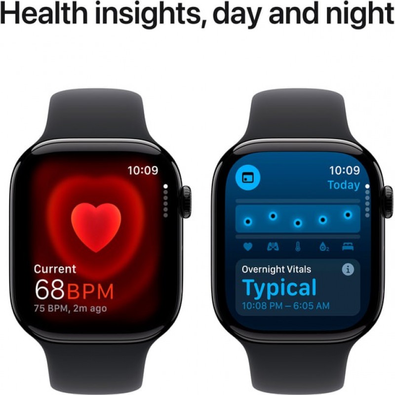 Тип Розумний годинник Особливості Оснащення Розмір ремінця смарт-годинників Apple M/L (145-220 мм) Сумісна ОС Тип матриці LTPO3 OLED Час роботи До 18 годин звичайного використання Роздільна здатність дисплея 416x496 Операційна система пристрою Дисплей Процесор Чотирьохядерний S10 SiP Версія Bluetooth Вбудована пам'ять Матеріал корпуса Алюміній Розмір корпусу 46 мм Водонепроникність IP6X Бездротові технології Тип зв'язку Повідомлення Датчики Роз'єми Немає Форма годинника Додаткові характеристики Підтримка Siri Тип заряджання Розміри, мм 46 x 39 x 9.7 Вага 36.4 г Колір ремінця Black Для кого Рік Колір корпусу Jet Black Тип корпусу Спортивний Країна реєстрації бренду США Гарантія 12 місяців Країна-виробник товару
