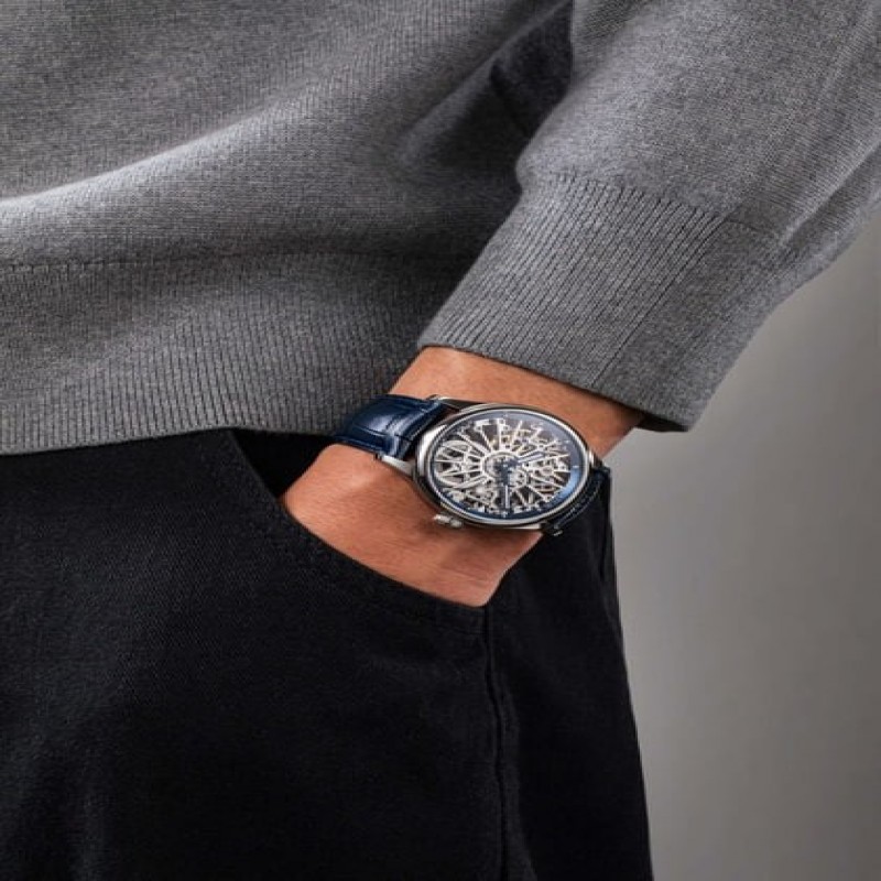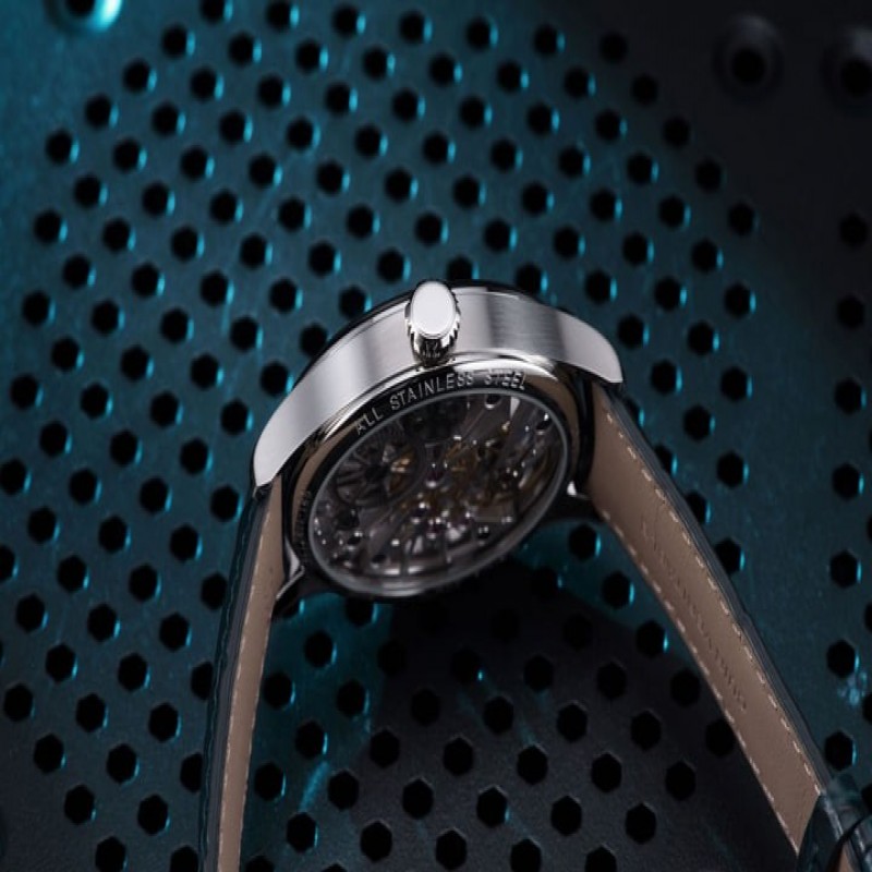 Додаткові характеристики: Скелетон із прозорою задньою кришкою, маленька секундна стрілка в положенні 9 годин