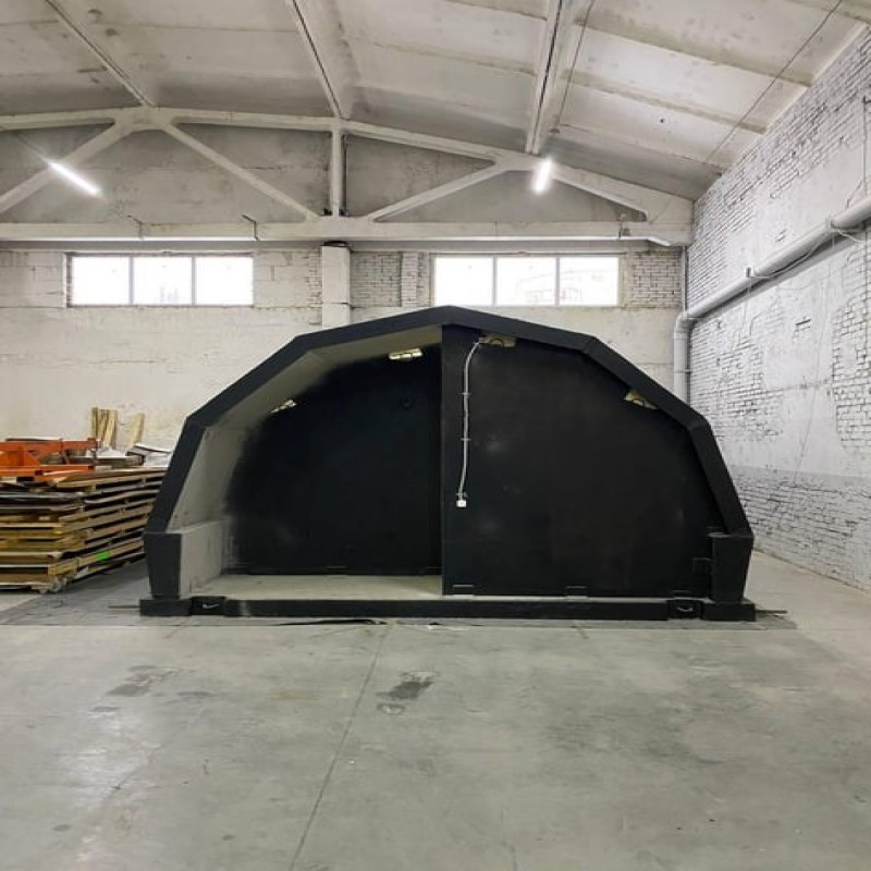Конструкція укриття має обтічну форму, яка є найбільш ефективною для зменшення впливу вибухової хвилі та навантаження від осколків боєприпасів та частин будівельних конструкцій.