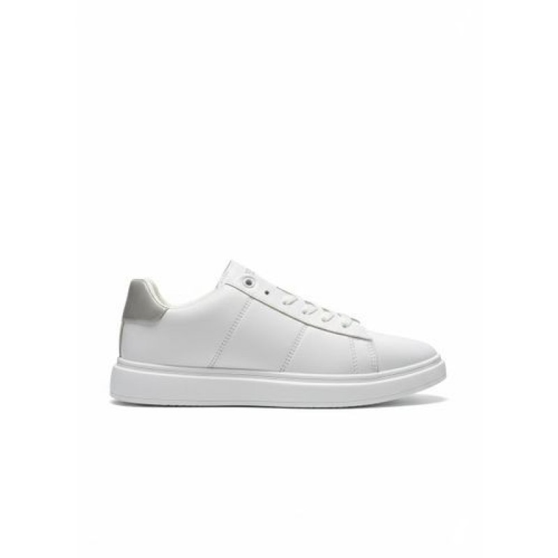 حذاء رياضي مسطح جلد للرجال - أبيض